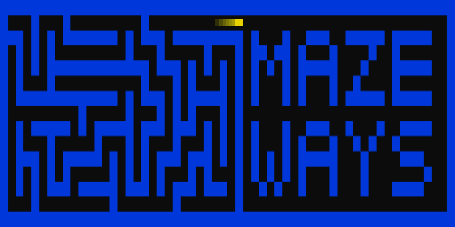 Maze Ways is a minimalist maze game. You play as a yellow cube, navigating through 10 simple square mazes. Each maze is made of the ASCII characters, and has an exit on the right side of the maze. Choose the right paths to reach the exit and complete all 10 levels to see a simple Win screen.